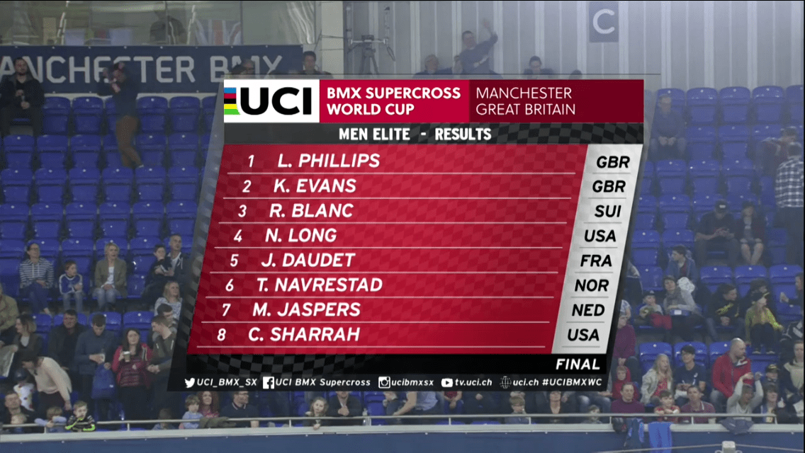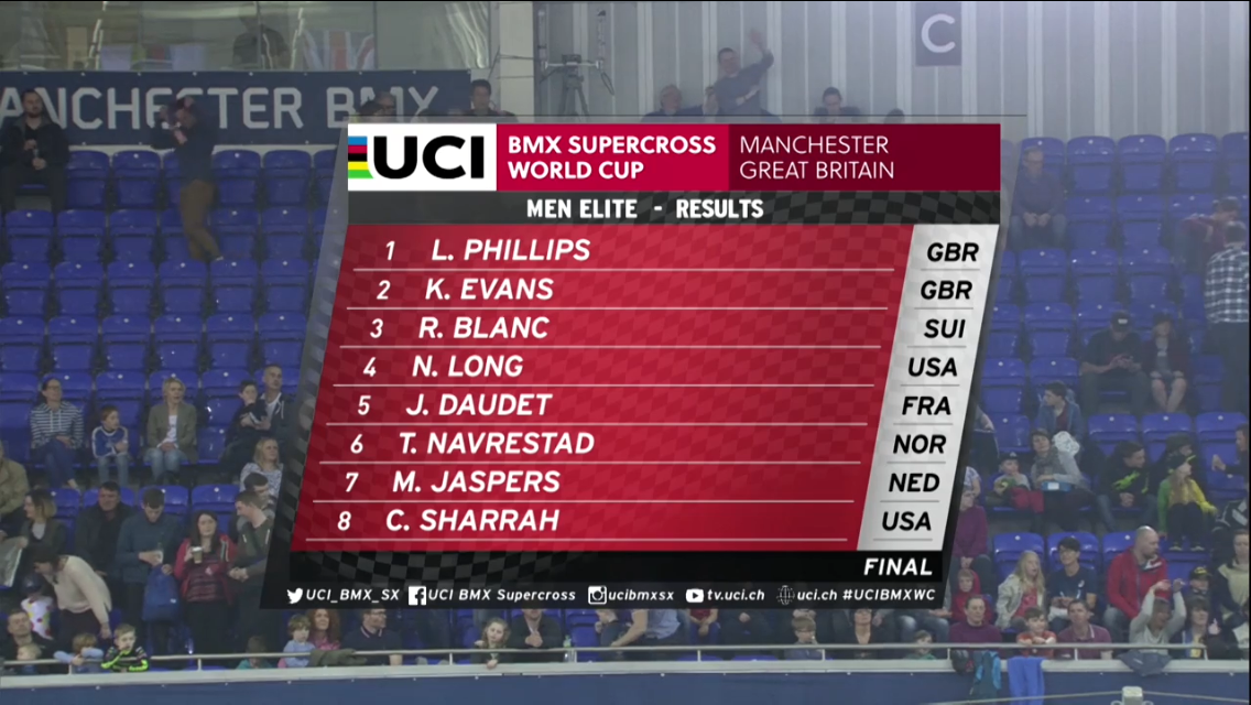 Catch the great racing action from round 2 of the UCI BMX Supercross from Manchester, Great Britain