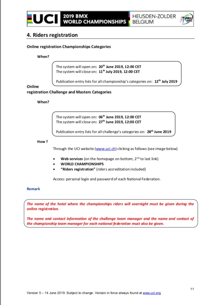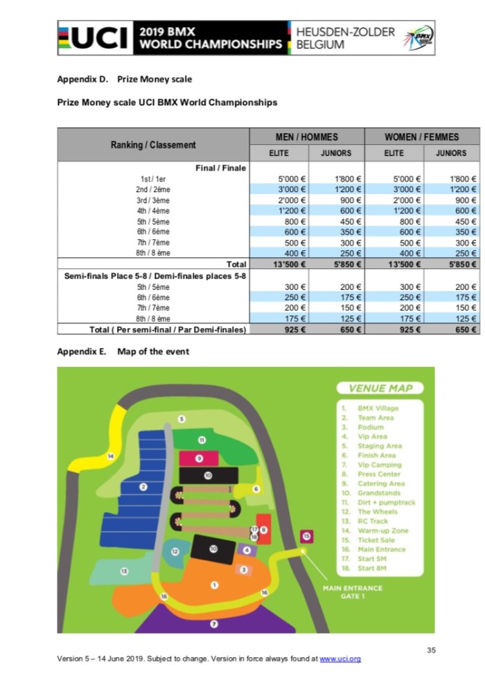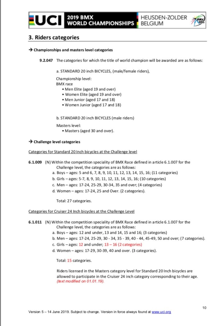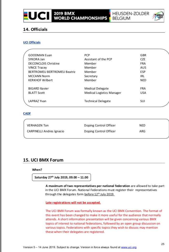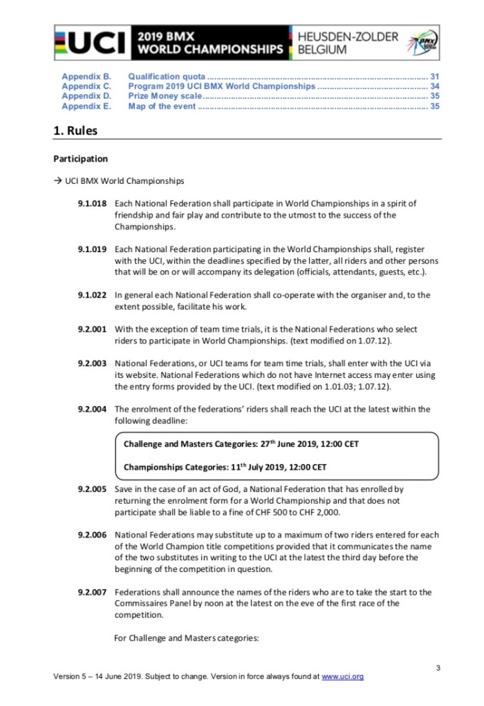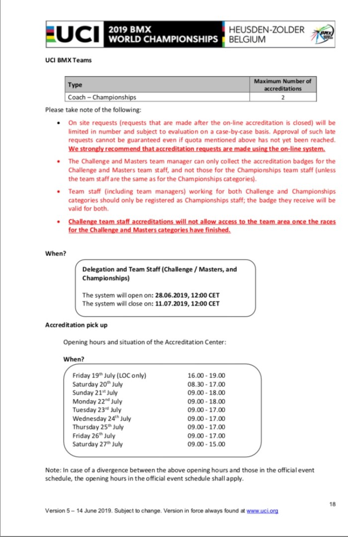 All inforamtion from https://www.uci.org/news/2018/uci-bmx-world-championships-official-documents
