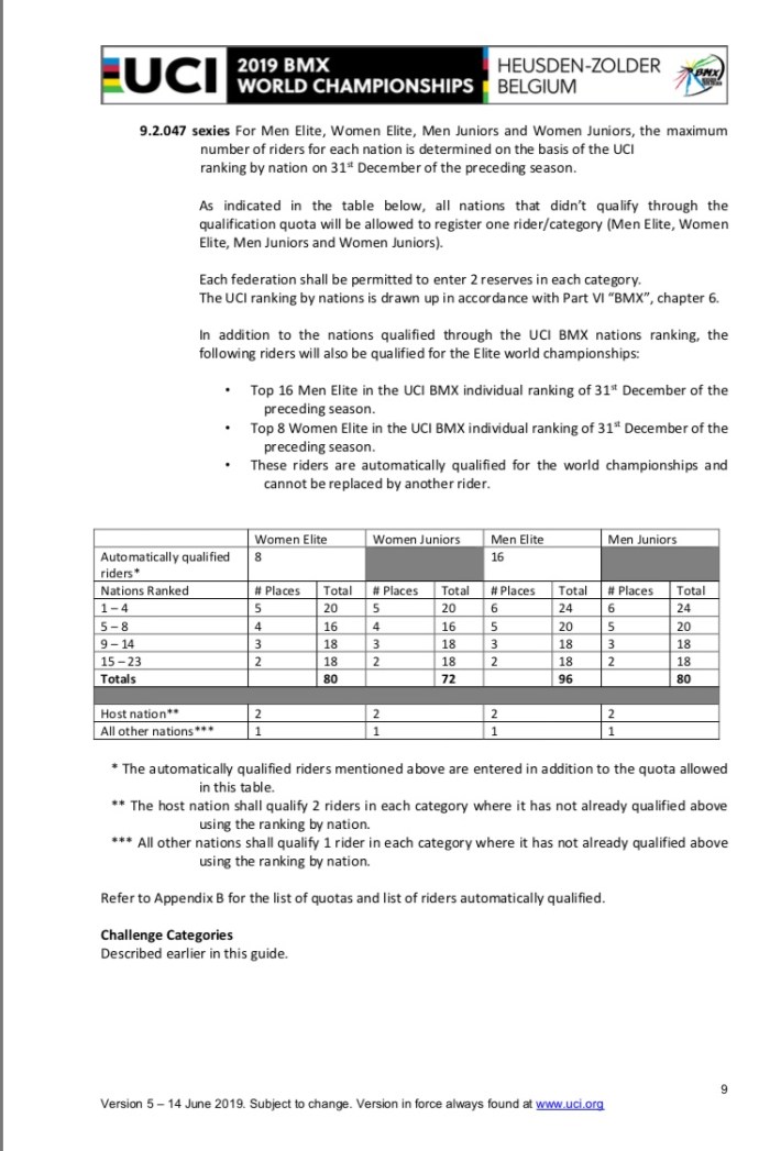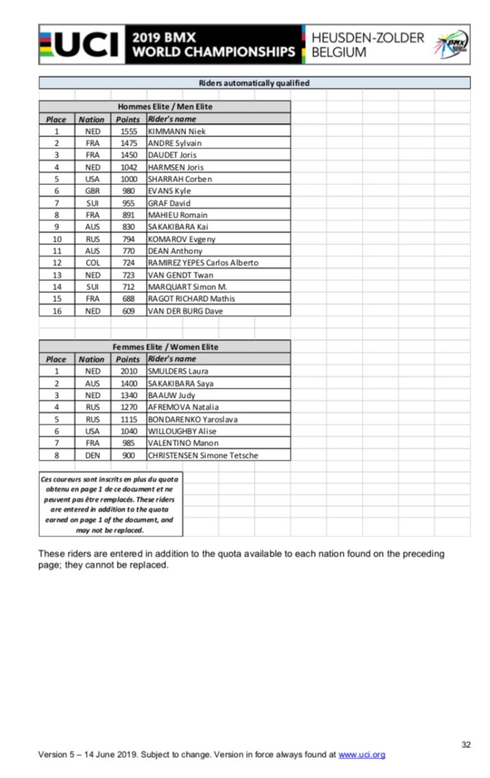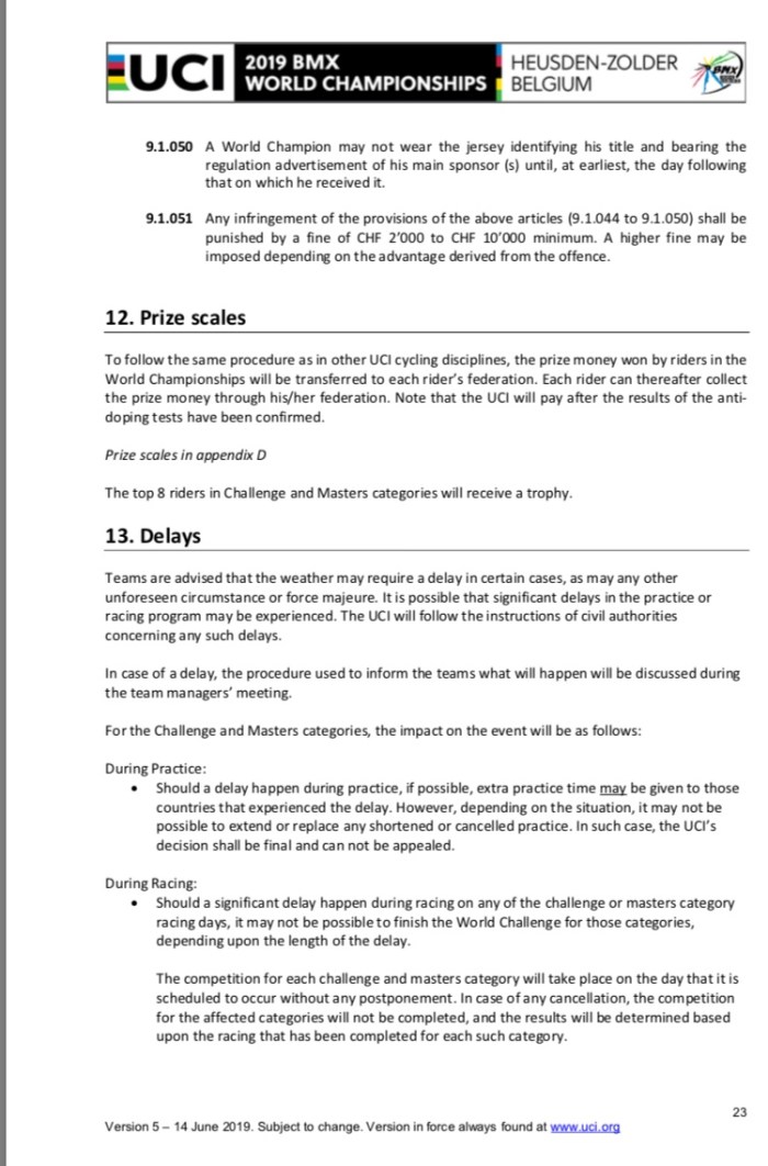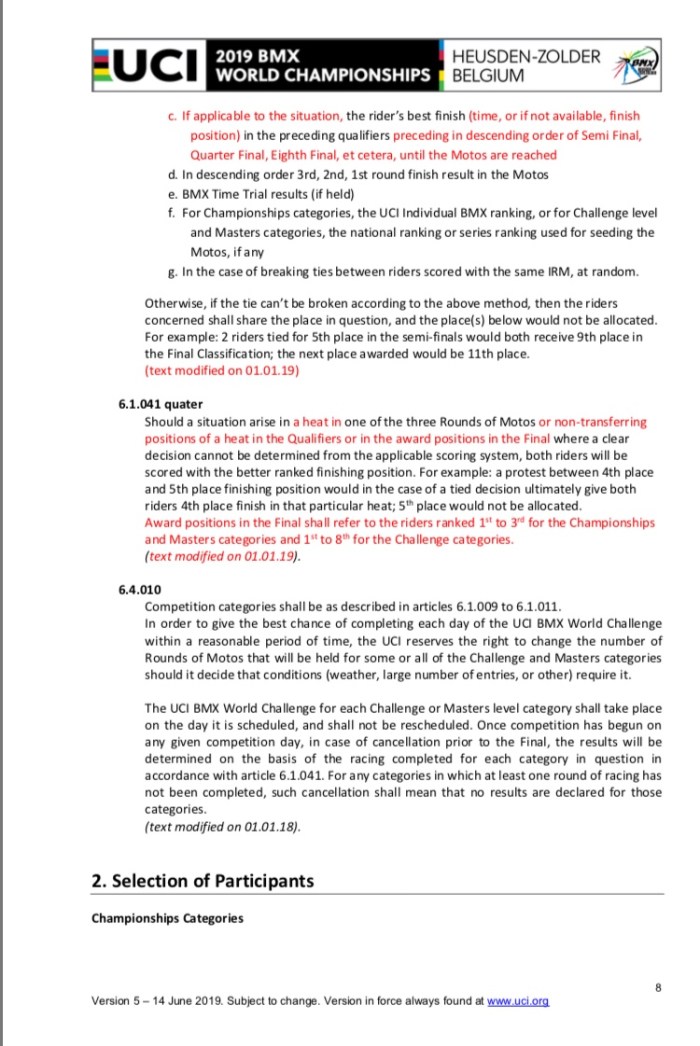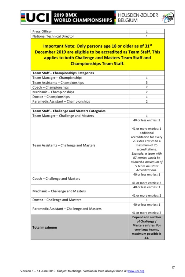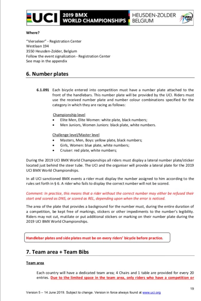 All inforamtion from https://www.uci.org/news/2018/uci-bmx-world-championships-official-documents