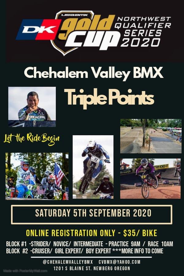 CVBMX is pleased to announce a triple-point race on Saturday, September 5! We’ve rescheduled our Gold Cup Qualifier to give riders another opportunity to compete in a multi-point race in Northern Oregon.