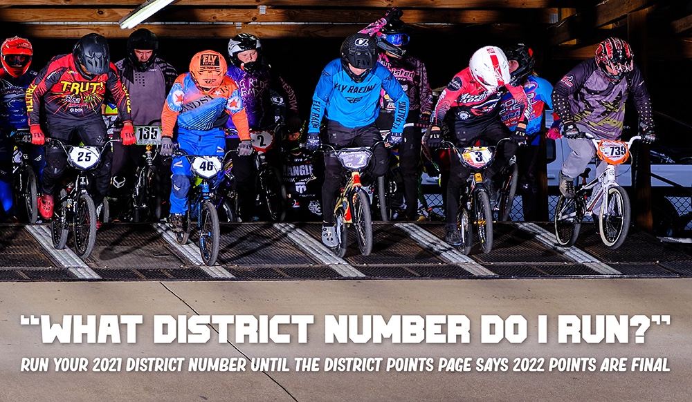 You can run your new 2022 district number once the top of the DISTRICT POINTS PAGE says they are final. In the meantime, while your districts Point are getting confirmed and implemented into the USA BMX database, please use your 2021 number at local and National Events