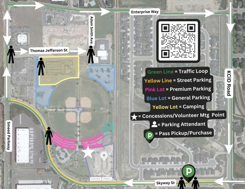 π If you need to purchase or pickup your pass – you will need to enter via Skyway headed west from Kcid Rd.