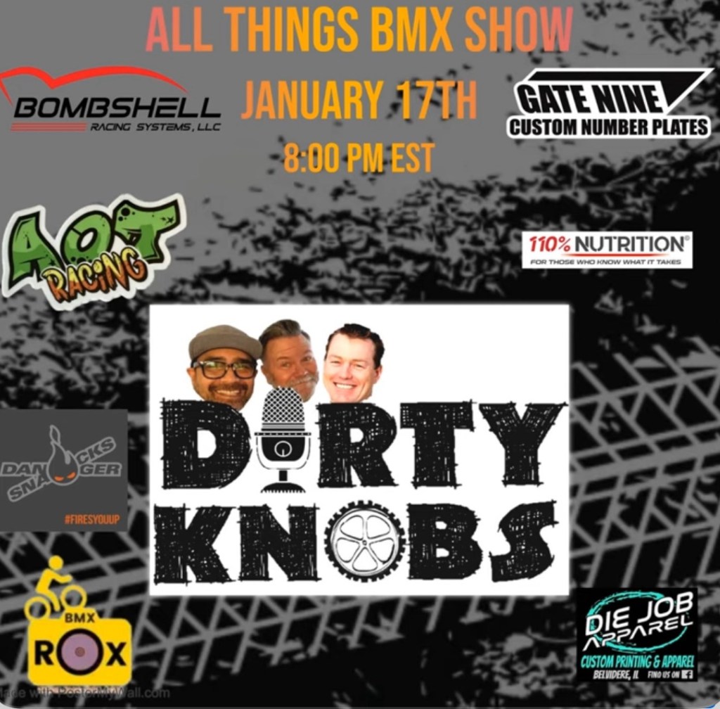 This week brings you episode 188 “Let’s Get Dirty” with the Dirty Knobs Podcast. Mike, James and Eric all host the biweekly podcasts that dives into all the juicy behind the scenes stories of BMX from back in the day. You can find the Dirty Knobs Podcast on their YouTube channel and all your popular podcast sites. The show starts at 8:00pm Est on our Facebook, YouTube and Twitch page. We look forward to talking All Things BMX and more with The Dirty Knobs.