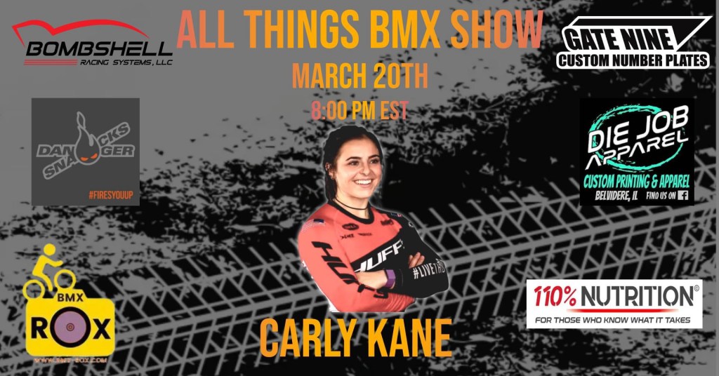 This weeks show brings you episode 196 “Carly is in the building” with Carly Kane. Carly is a professional BMX racer who has been racing bikes for over 13 years. On top of racing, she also spends many non-race weekends traveling and coaching younger and less experienced racers. She loves being able to give back and to share the love for this awesome sport.