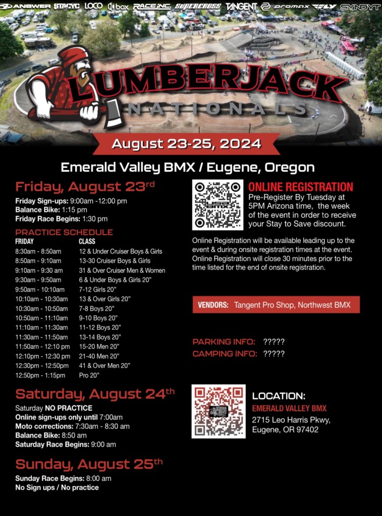 See below for a schedule leading up to the weekβs events. We look forward to having you at Emerald Valley BMX.