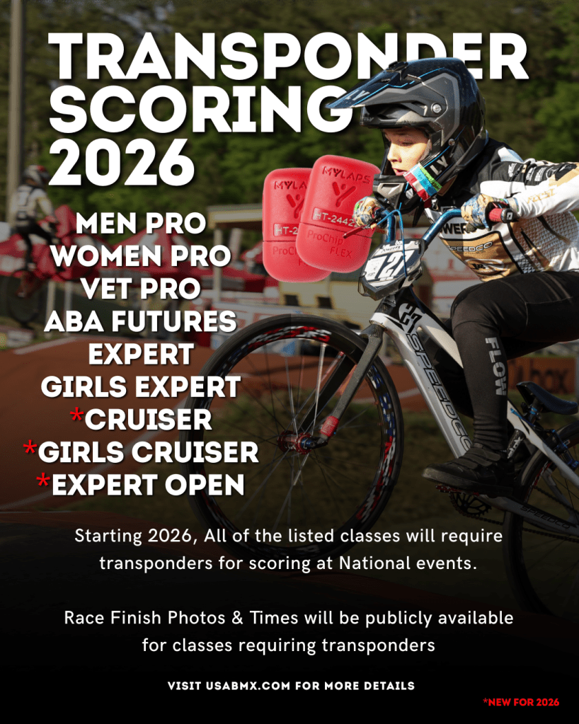 Original article at https://www.usabmx.com/news-and-media/General/2025-10-26/Transponder-Scoring-to-Expert-Open,-Girl-Cruiser,-and-Cruiser-Classes-for-2026?id=2062
