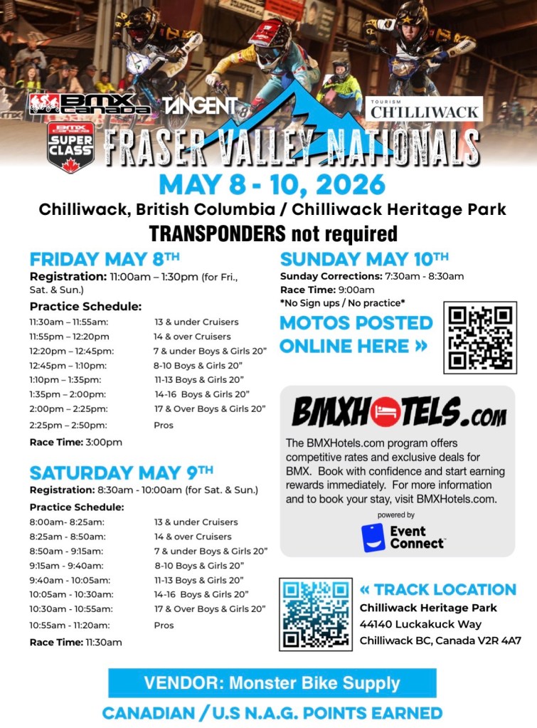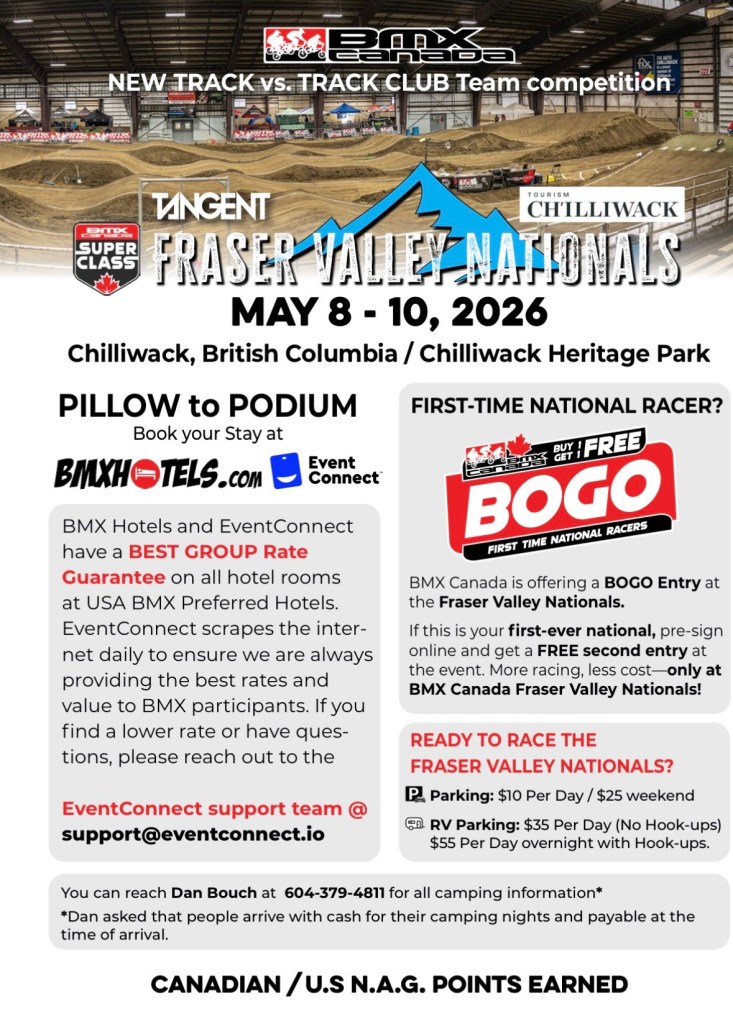 In the West, the series starts in Chilliwack for the Fraser Valley Nationals and then just three weeks later, heads to Nepean BMX for the Capital City Nationals.